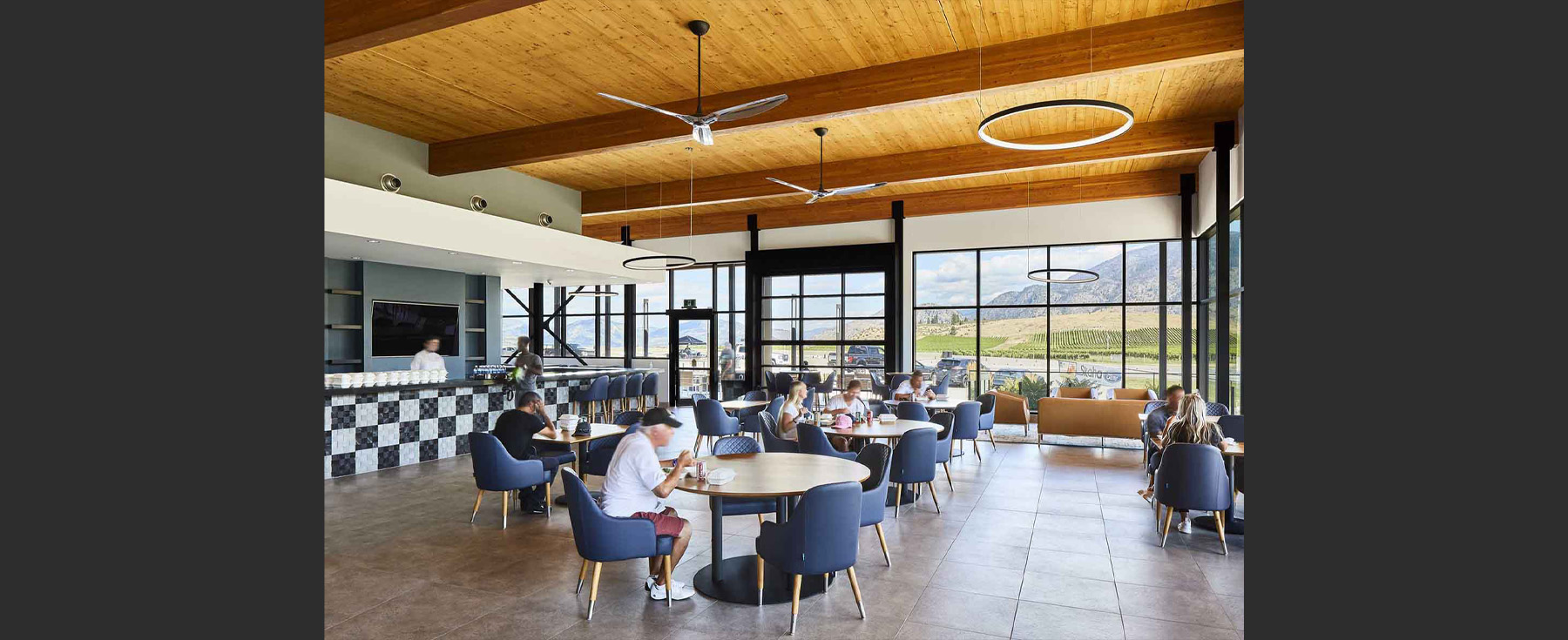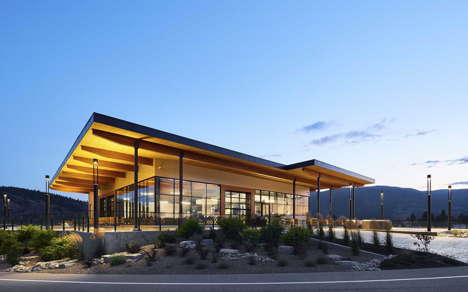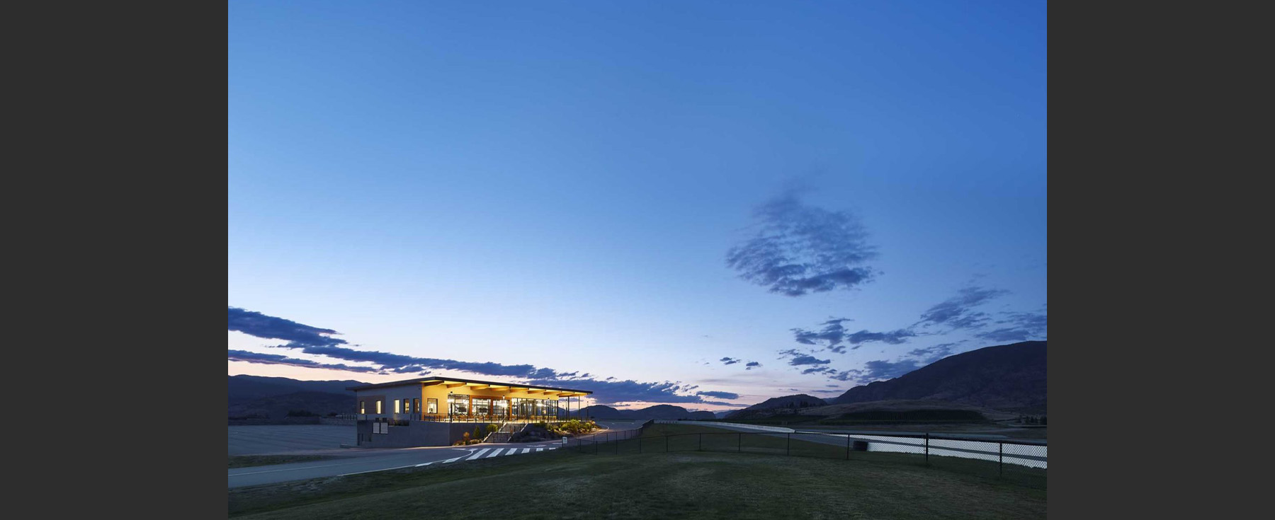 This building sits adjacent to the pit lane of the Area 27 Motorsports Park track – a track designed as a classic Grand Prix by legendary Canadian race car driver Jacques Villeneuve.
