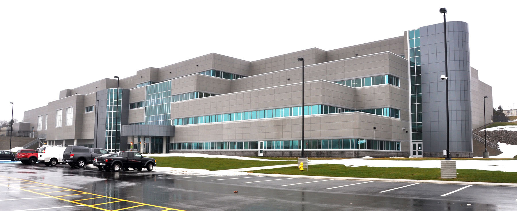 In partnership with Bird Construction, we designed a new multi-purpose facility at Canadian Forces Station (CFS) St John’s to replace 16 aging buildings for greater efficiency and effectiveness of military operations. The new consolidated facility includes administrative and operational offices, training space including a gymnasium, training kitchen with messes, classrooms, assembly theatres, music rooms, a firing range and tactical armoured patrol vehicle maintenance bays, as well as special medical and dental facilities. The work involved staged demolition of the existing structures, the temporary relocation of personnel to local facilities during construction, and then the building of the new modern facility which is tailored to operations now and anticipates future needs.