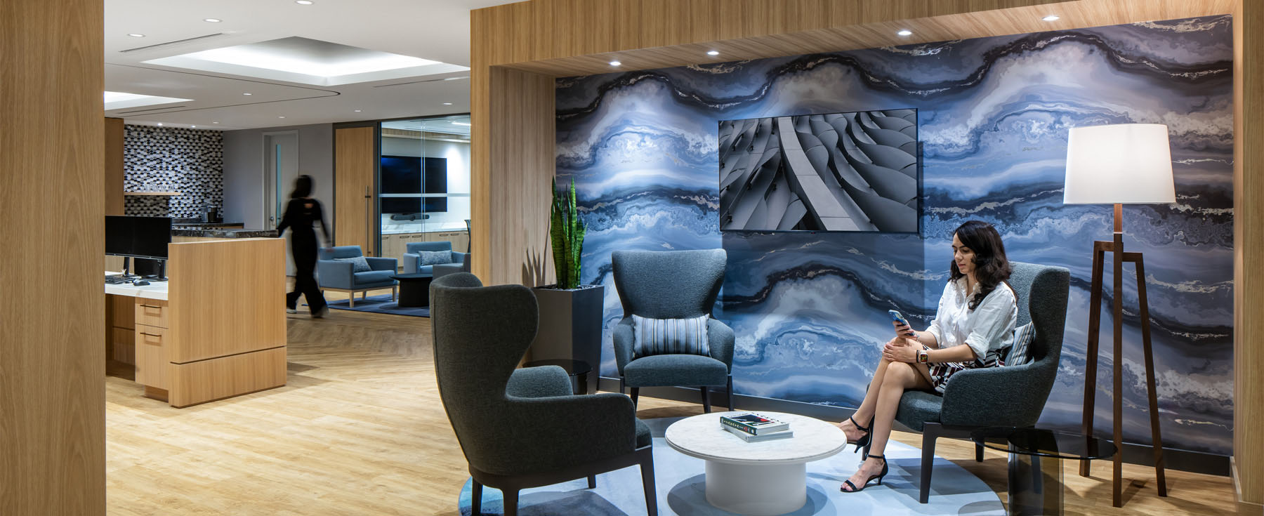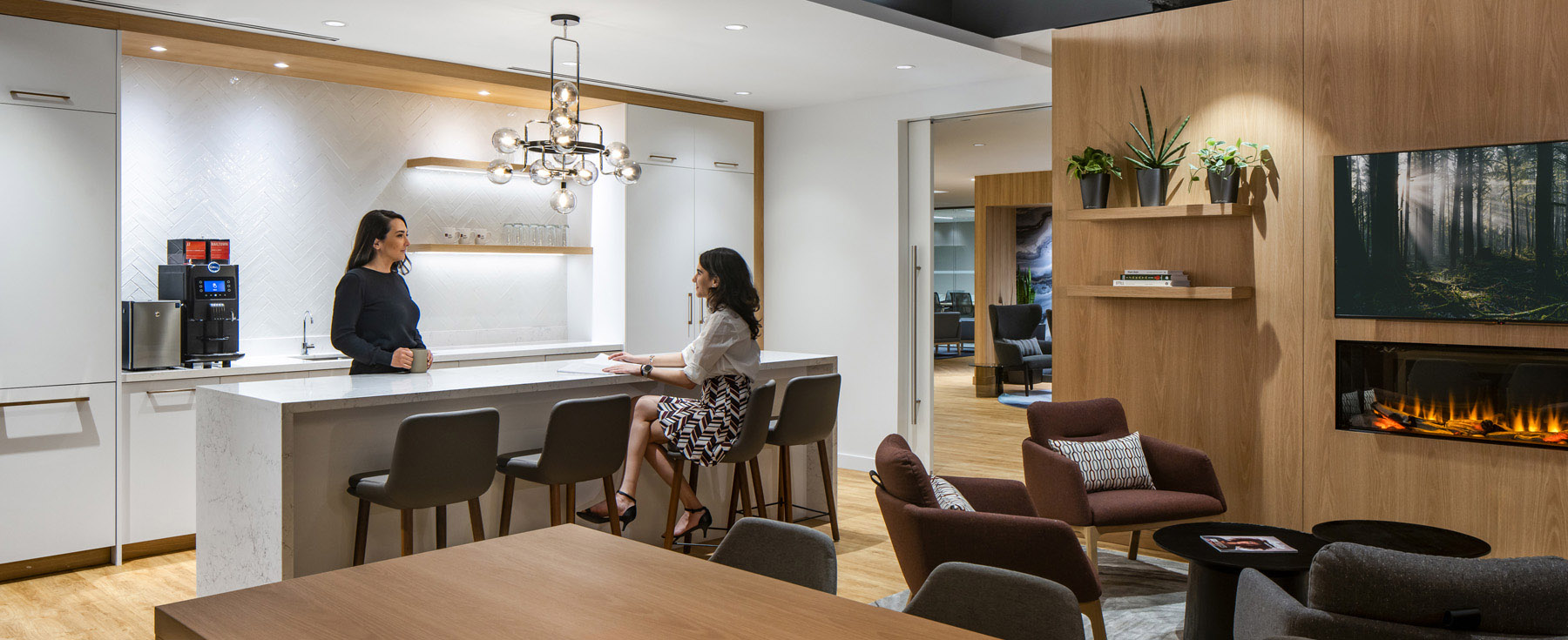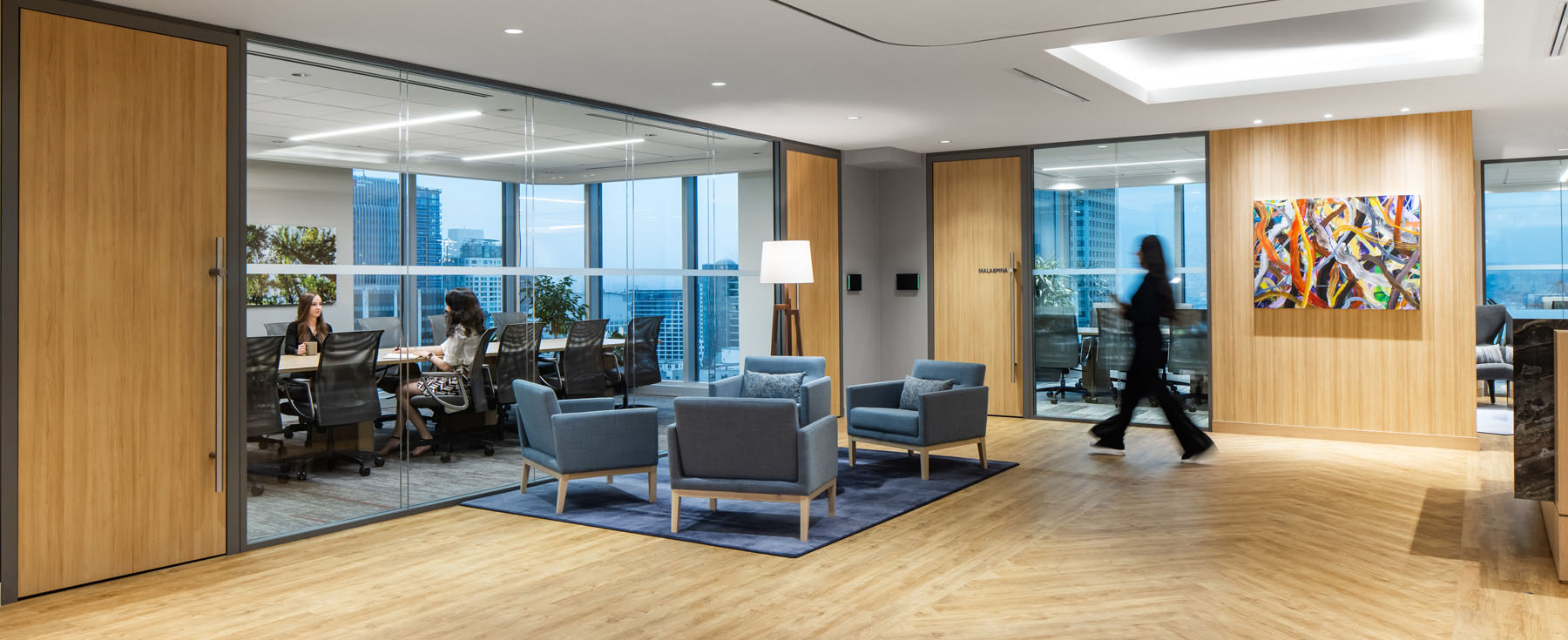 LK Law is a full-service firm. The firm’s new office is located on 15th floor at 401 West Georgia, and is focused on accommodation for current and future growth, enhancing the in-office staff experience, and providing clients with privacy and comfort, all of which represent the firm’s values. For LK Law, the project goals and objectives are focused on creating a great experience for both employees and clients. For the employees, the new office will encourage engagement by providing the opportunity to enhance the company culture of family, to connect to colleagues both existing and new. The workplace is to contribute to LK Law’s attraction and retention of employees, leveraging the new amenities, client conferencing areas, and naturally lit practice areas. A unique aspect of this project is the focus on acoustic solutions to provide speech isolation for privacy.