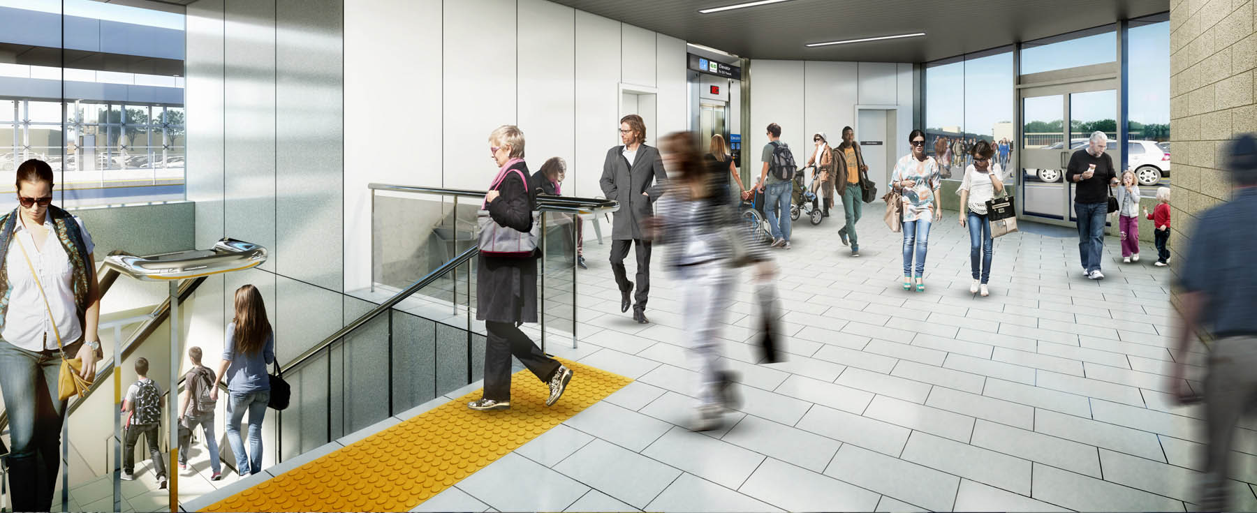 The project intends to provide a system-wide infrastructural transformation to the rail stations and related infrastructure along the Lakeshore West rail corridor, one of the busiest in the Greater Toronto and Hamilton Area. The project’s major scope included: the redevelopment of five existing stations to increase capacity and service frequency; accessibility for stations and railroad crossings, including new pedestrian bridges, tunnels, and elevators, while new platforms were designed for future level boarding; new platforms to suit added tracks and rail alignments; electrical infrastructure for quieter and more efficient service.