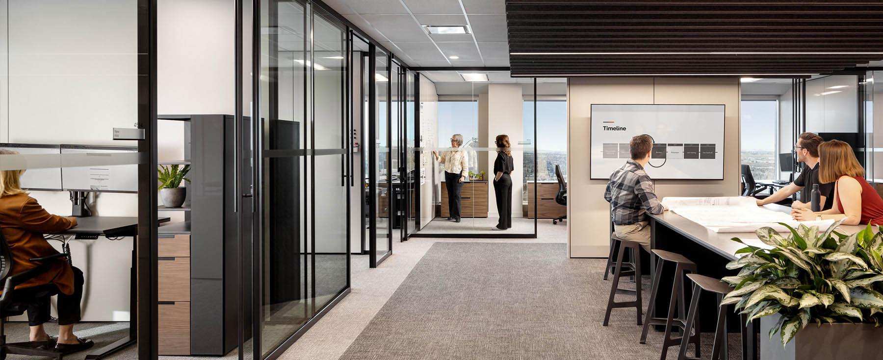 Paramount Resources’ offices are universal in size and fully glazed to promote transparency, while a ‘neighbourhood’ concept replaces the 80/20 office-to-workstation ratio of with collaborative team zones that support integration and knowledge-sharing.