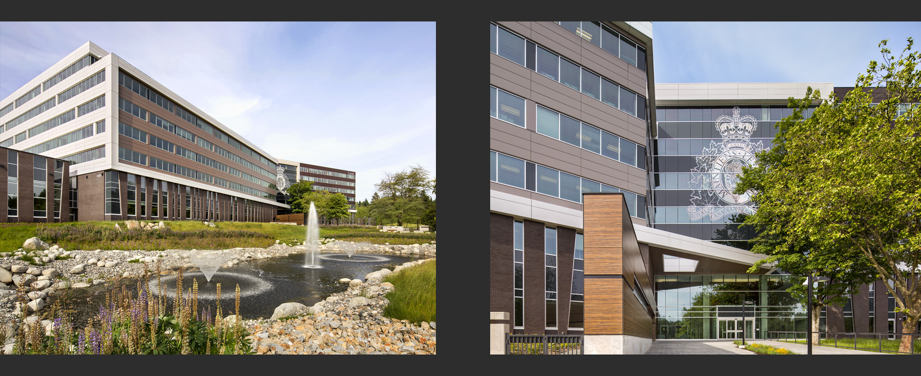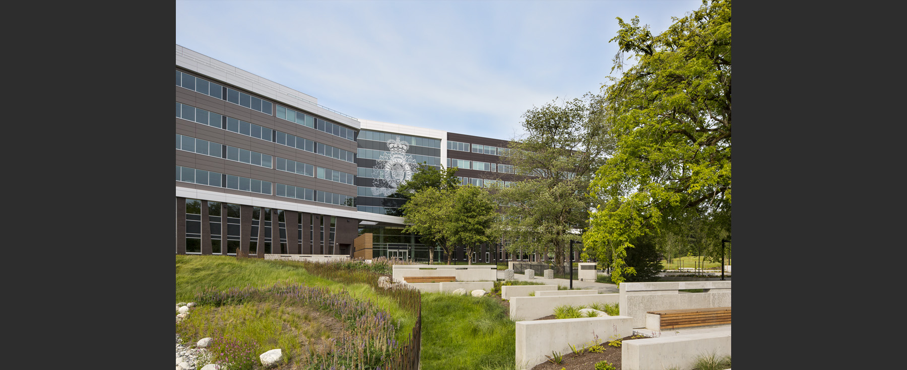 Kasian designed the new Royal Canadian Mounted Police (RCMP) E Division Headquarters in Surrey, BC. This landmark project is a Public-Private-Partnership (P3) between the Government of Canada and Green Timbers Accommodation Partners, a consortium formed by Bouygues Batiment International, HSBC Infrastructure and ETDE FM Canada. The headquarters provides 820,000 SF of consolidated office and support space for 2,700 police personnel, previously housed in 25 separate locations throughout the BC Lower Mainland. It works as a cohesively designed campus complete with a seven-storey operations centre, a post-disaster emergency operations centre, and a warehouse facility including workshops, garage and vehicle bays.