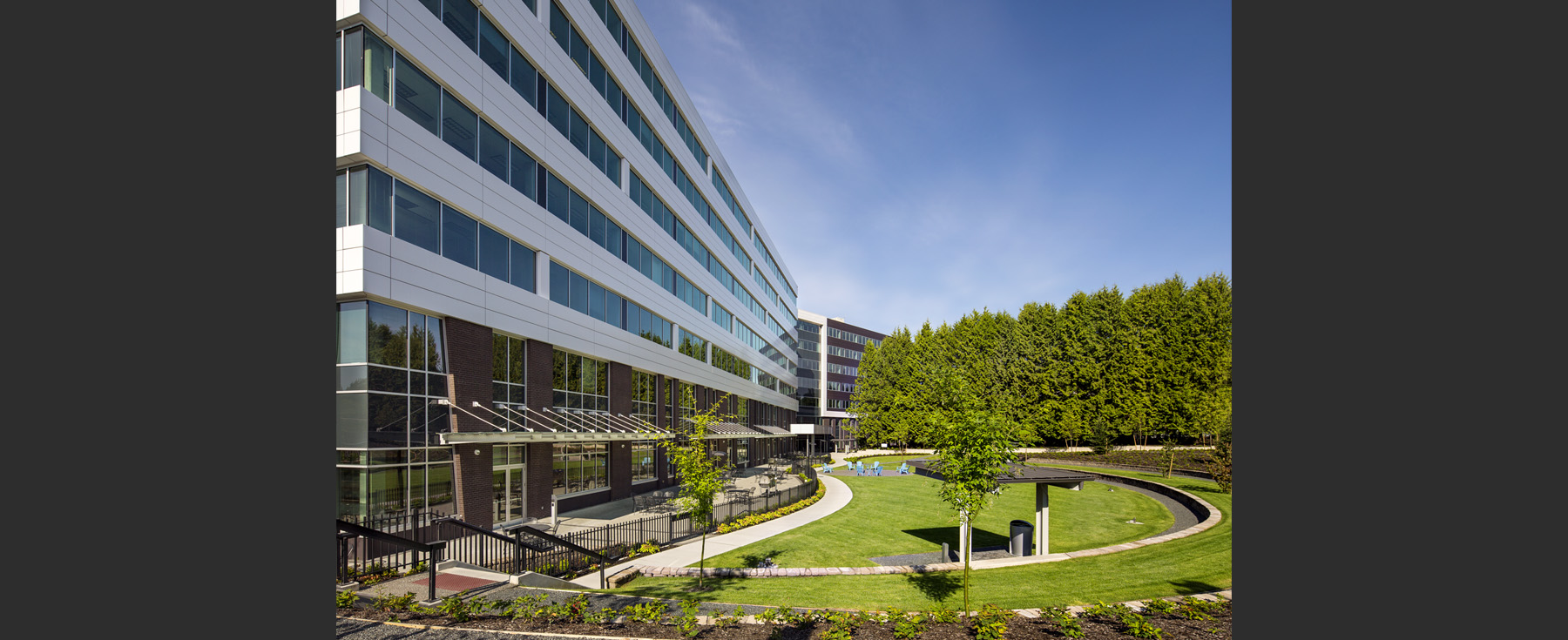 Built to LEED Gold specifications, the design takes advantage of the unique setting within the historic Green Timbers Urban Forest. Open flexible planning and extensive glazing maximizes the views promoting a healthy, vibrant work environment. The incorporation of green roofs as well as a stormwater detention pond allow the buildings to respond and contribute to the natural surroundings while addressing necessary stormwater management on site.