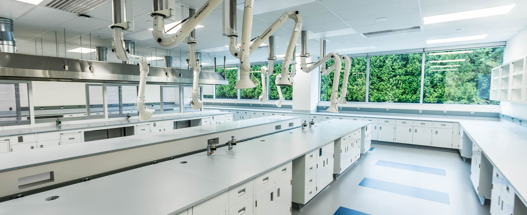 As part of a P3 team, we designed a new standalone national forensics laboratory building as part of the RCMP E Division campus in Surrey BC. The 80,000sf building includes office administration space as well as a series of highly specialized labs, such as a firearms lab, biology lab and toxicology lab and associated support spaces. The design takes advantage of the natural forest setting maximizing natural lighting and views to nature even within the laboratory spaces.