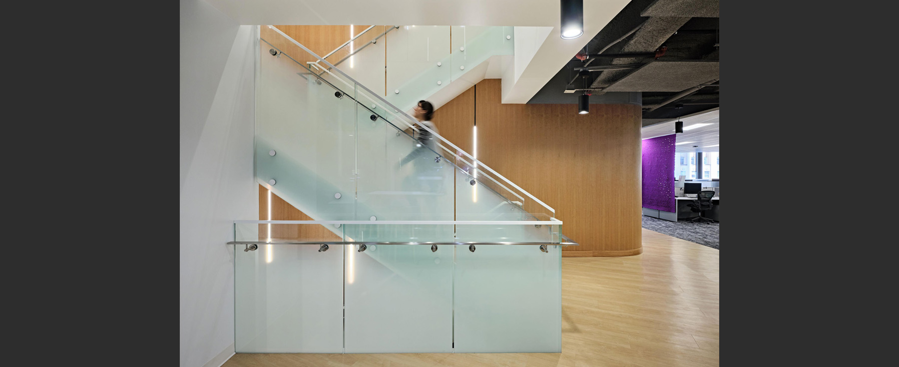 Kasian worked with SAP and CBRE to develop a flexible and innovative environment across three full floors connected by an internal stair. The planning strategy places the majority of workstations in an open configuration, including hoteling and visitor stations, supported by a network of collaborative zones. The remaining areas contain private meeting rooms and enclosed breakout spaces.