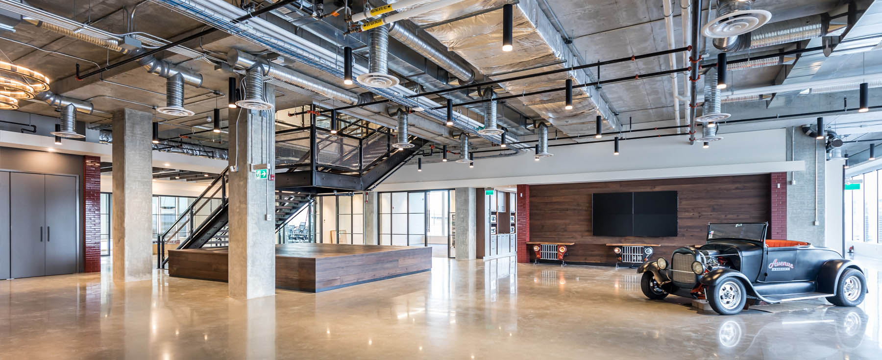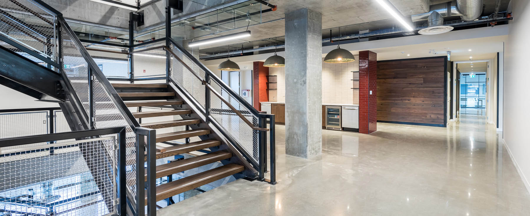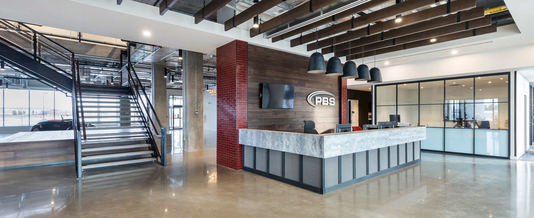 Building #1, at the south end of the main street, is four storeys in height and is approximately 85,000 SF in area. Given the potential construction time frame to develop the entire site, careful consideration was given to the building facades and materials. A ‘kit of parts’ was developed, which included a combination of curtain wall materials and aluminum caps, build-outs on some floors (picture frame), balconies, expansive entry canopies, and wayfinding.