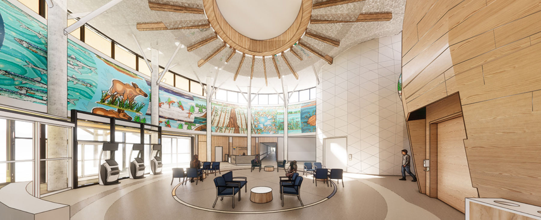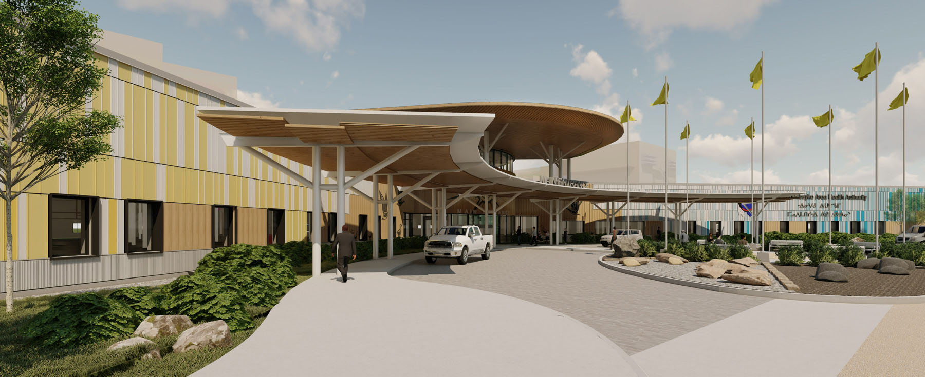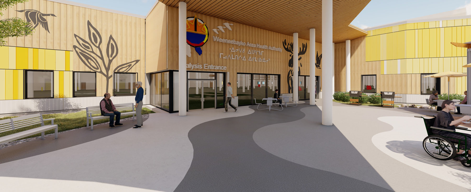 The guiding principle of this design is not only to replace aging hospital infrastructure with resilient, functional, state-of-the-art buildings, but to serve as a genuine act of reconciliation. Engagement with the Cree First Nations communities served by WAHA fostered trust, dialogue, and involvement throughout all stages of the project. Feedback from WAHA and community members from across the region incorporated elements that further connect the design to the region’s natural landscape and Cree culture.