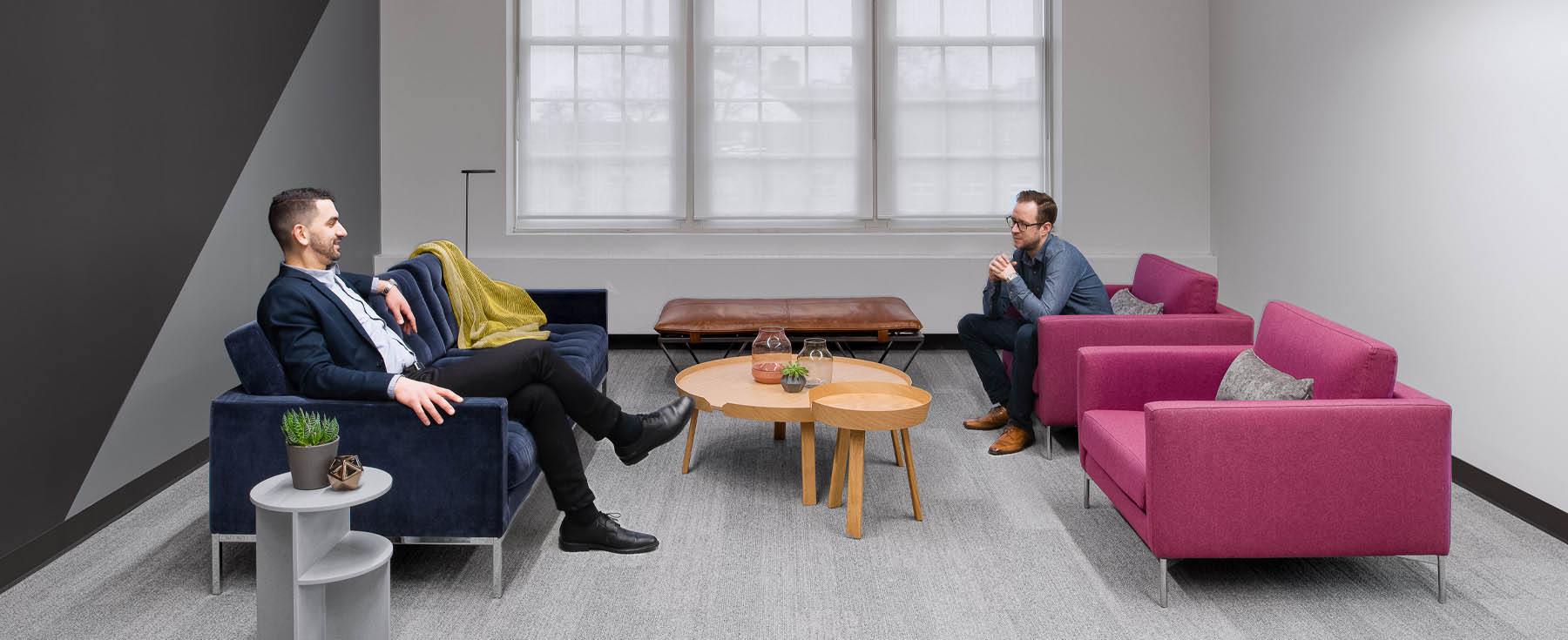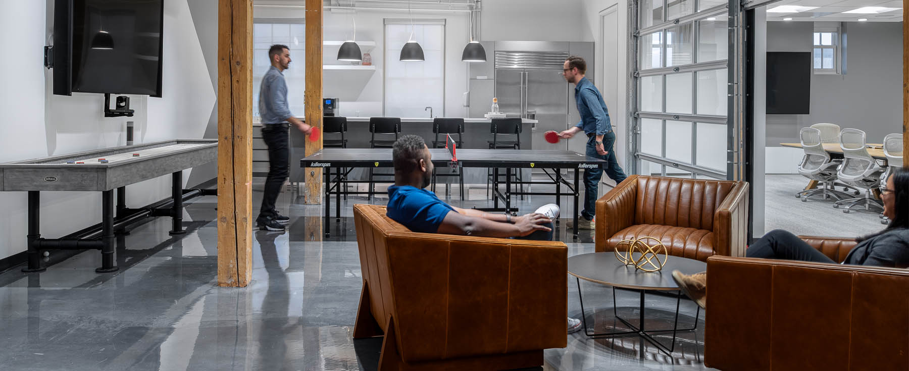 The design intent for their new space focused on their existing talent: a group of young professionals who needed an environment indicative of their corporate culture and their work processes. Equally importantly was creating a space that was effective, promoted collaboration, and evoked a “young vibe”. This sense of youthfulness was achieved by using finishes and furniture that complemented the existing brick + beam architecture.